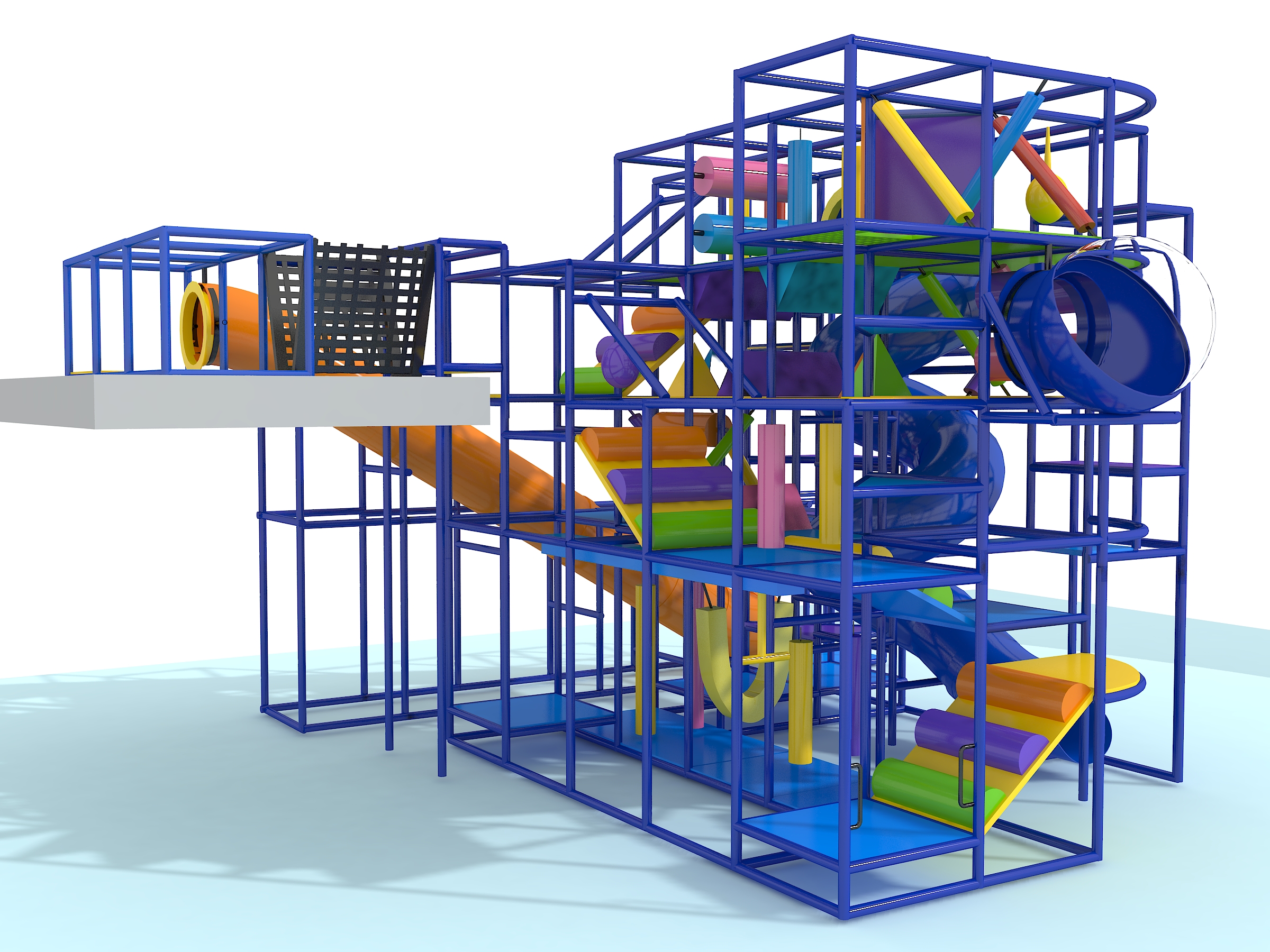 Indoor Playground GPS1197 is a custom indoor playsystem for children three to twelve years of age. The softplay unit measures 16 ft. wide by 19 ft. high and a length of 20 ft. The minimum room space required for this children’s play equipment is approximately 22 ft. room width with a 21 ft. ceiling and 26 ft. room length. Total area: 320 sq ft. Medium Size Indoor Playground.