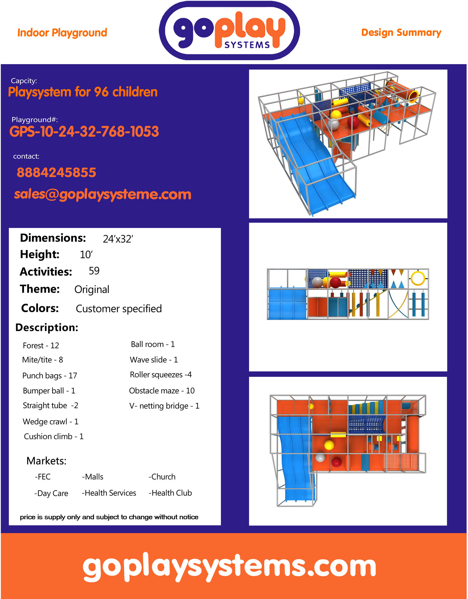 Indoor Playground GPS1053 – 10 ft. H x 24 ft. W x 32 ft.