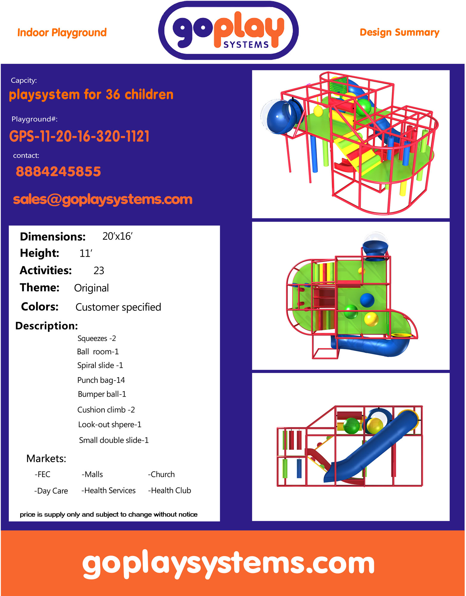 Availability: In-stock Brand: Go Play Systems SKU: gps-11-20-16-320-1121 Shipping: Free Shipping US to lower 48 states. Shipping Policy Return and Refund Policy *GoPlay sells worldwide. Prices may not include additional shipping and handling charges to your specific location. Contact us for current international shipping rates.
