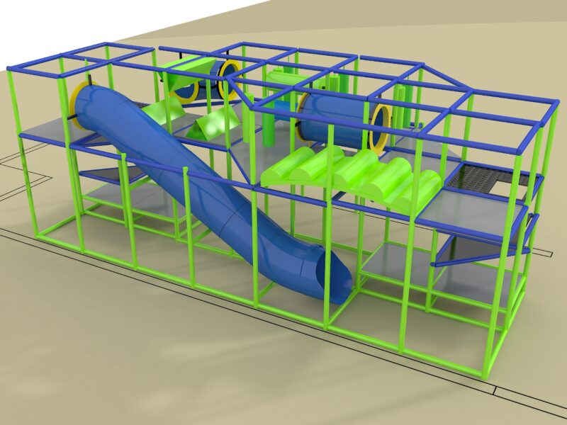 Indoor Playground GPS1236 is a custom indoor playsystem for children three to twelve years of age. The softplay unit measures 13 ft. wide by 11 ft. high and a length of 28 ft. The minimum room space required for this children’s play equipment is approximately 19 ft. room width with a 13 ft. ceiling and 34 ft. room length. Total area: 364 sq ft. Medium Size Indoor Playground.