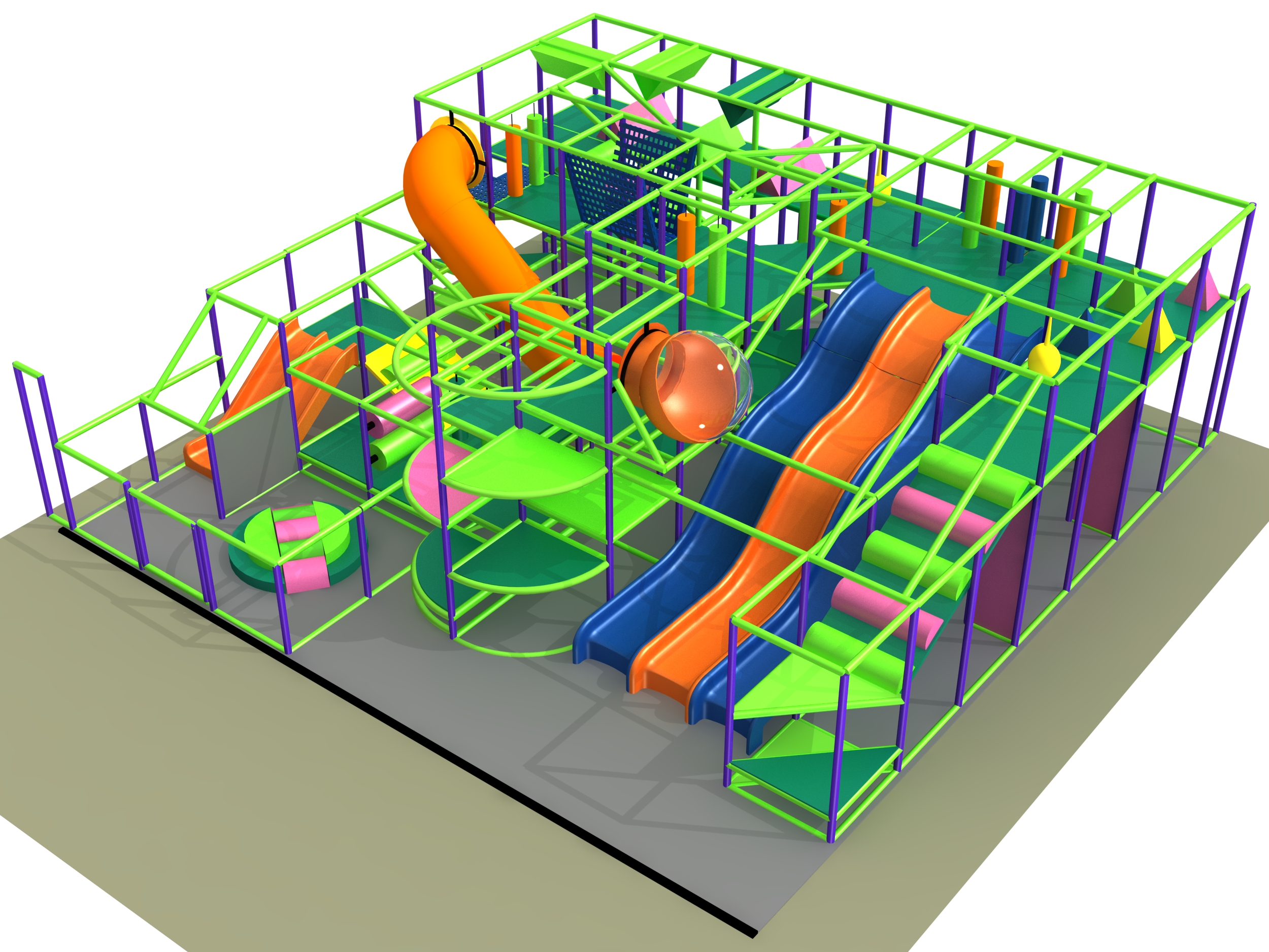 Indoor Playground GPS1284 is a custom indoor playsystem for children three to twelve years of age. The softplay unit measures 32 ft. wide by 13 ft. high and a length of 32 ft. The minimum room space required for this children’s play equipment is approximately 38 ft. room width with a 15 ft. ceiling and 38 ft. room length. Total area: 1024 sq ft. Medium Size Indoor Playground.