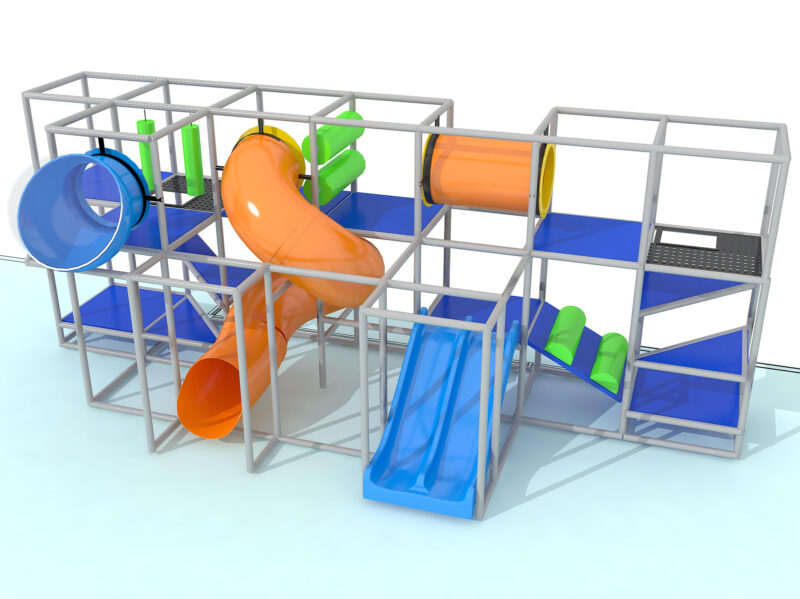 Indoor Playground GPS1293 is a custom indoor playsystem for children three to twelve years of age. The softplay unit measures 28 ft. wide by 11 ft. high and a length of 10 ft. The minimum room space required for this children’s play equipment is approximately 34 ft. room width with a 13 ft. ceiling and 16 ft. room length. Total area: 280 sq ft. Medium Size Indoor Playground.