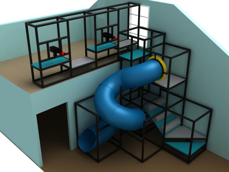Indoor Playground GPS1298 is a custom indoor playsystem for children three to twelve years of age. The softplay unit measures 14 ft. wide by 17 ft. high and a length of 16 ft. The minimum room space required for this children’s play equipment is approximately 20 ft. room width with a 19 ft. ceiling and 22 ft. room length. Total area: 224 sq ft. Small Size Indoor Playground.