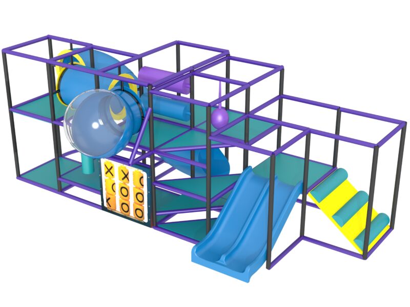 Indoor Playground GPS1301 is a custom indoor playsystem for children three to twelve years of age. The softplay unit measures 10 ft. wide by 9 ft. high and a length of 24 ft. The minimum room space required for this children’s play equipment is approximately 16 ft. room width with a 11 ft. ceiling and 30 ft. room length. Total area: 240 sq ft. Medium Size Indoor Playground.