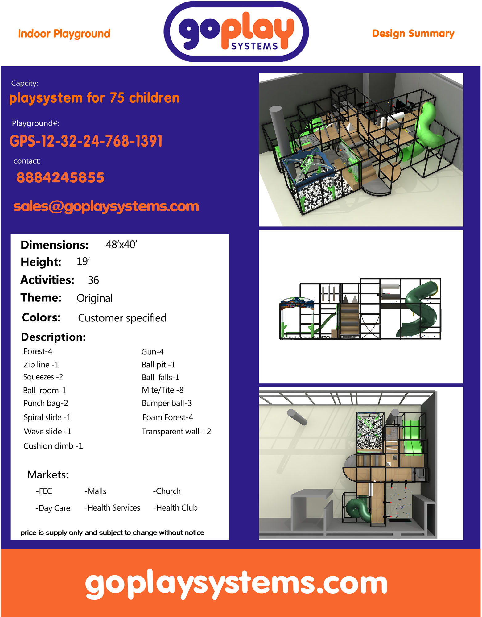 Indoor Playground GPS1391 – 12 ft. H x 24 ft. W x 32 ft.